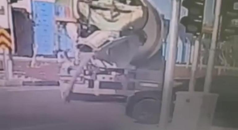 Adıyaman da hafriyat TIR ının dorsesindeki beton, yola döküldü Adıyaman Haberleri