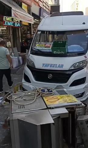 Yolcu minibüsü kaldırımdaki 2 kişiye çarptı; kaza kamerada