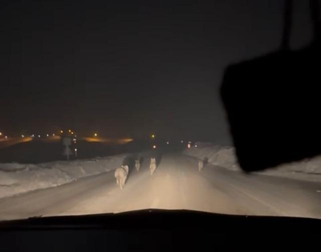 Akşam saatlerinde seyir halindeki bir araçta bulunan vatandaşlar, yol kenarında hareket eden kalabalık kurt sürüsünü fark etti. Bir süre yol boyunca ilerleyen ve yiyecek aradıkları gözlenen kurtlar, araç ışıklarına aldırış etmeden bölgeden uzaklaşarak gözden kayboldu.