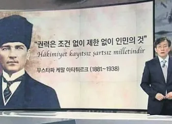 Güney Koreli spiker, Atatürk'le ilgili haberi sunarken saygısını göstermek üzere ayağa kalktı.