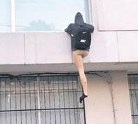 Mersin'de bir sigorta şirketinin ön cephesinde bulunan "balkona tırmanan hırsızı" simgeleyen mankenin pantolonu çalındı!