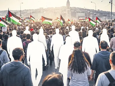 Gazze'nin bebeleri için yürümek mi? Allah korusun, sonra siyonist ve emperyalist uşağı "dijitale" nasıl iş yaparlardı? ABD'ye İsrail'e göbekten bağlı, şimdilerde iplikleri bolca pazara çıkan sözde yapımcılardan nasıl teklif alırlardı?