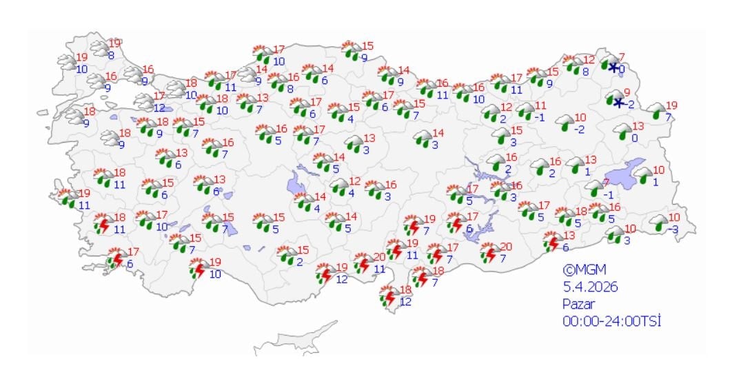 SAĞANAK ŞEKLİNDE YAĞACAKYağışların çoğunlukla yağmur ve sağanak şeklinde olacağı, kıyı Ege ve Akdeniz ile Güneydoğu Anadolu’nun bazı noktalarında gök gürültüsünün eşlik edebileceği ifade ediliyor. Doğu Anadolu’nun kuzeydoğusundaki yüksek alanlarda ise yağışların zaman zaman karla karışık yağmur ve kar biçiminde olabileceği belirtiliyor.