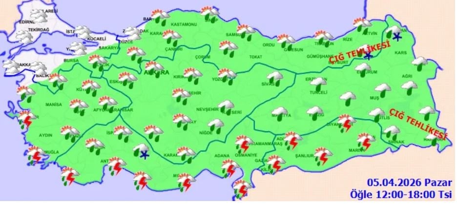 ÇIĞ TEHLİKESİ UYARISI: Doğu Karadeniz’in iç kesimlerinin yüksekleri ile Doğu Anadolu’nun doğusunun yüksek kar örtüsüne sahip eğimli kesimlerinde çığ tehlikesi bulunmaktadır.