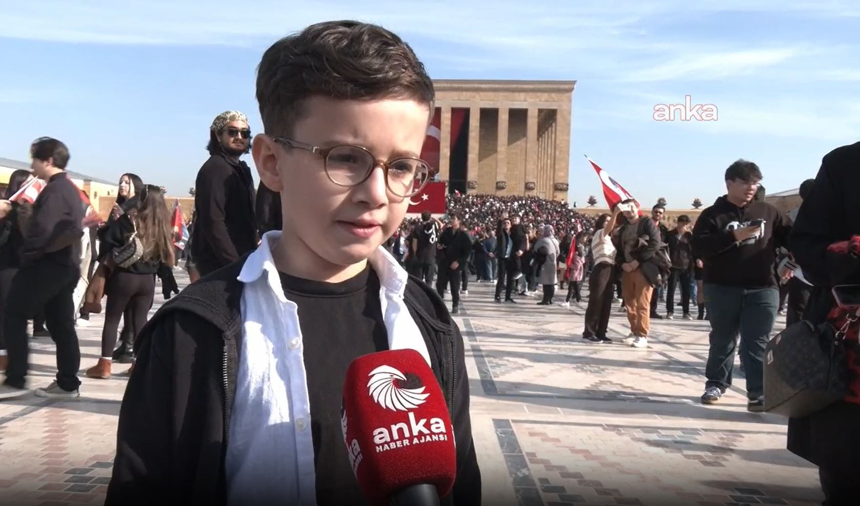 "BİZLER ATATÜRK'ÜN İZİNDEN GİTMELİ, CUMHURİYETİMİZİ KORUMALIYIZ"9 yaşındaki Poyraz Sıraç Buzkıran, Anıtkabir'de "Bayrağım ve Atatürk" şiirini okuyarak şunları söyledi: