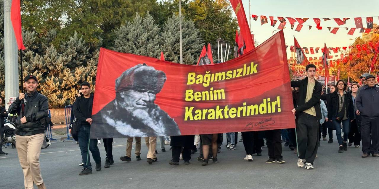 SLOGANLARLA YÜRÜDÜLERYürüyüşte, "Ankara, Atasının izinde, Cumhuriyet yolunda", "İlelebet Cumhuriyet, tam bağımsız Türkiye" ve "Bağımsızlık benim karakterimdir" yazılı pankartlar taşınırken, "Mustafa Kemal'in askerleriyiz", "Türkiye laiktir, laik kalacak", "Her şey çok güzel olacak" ve "Kurtuluş yok tek başına, ya hep beraber ya hiçbirimiz" sloganları atıldı.