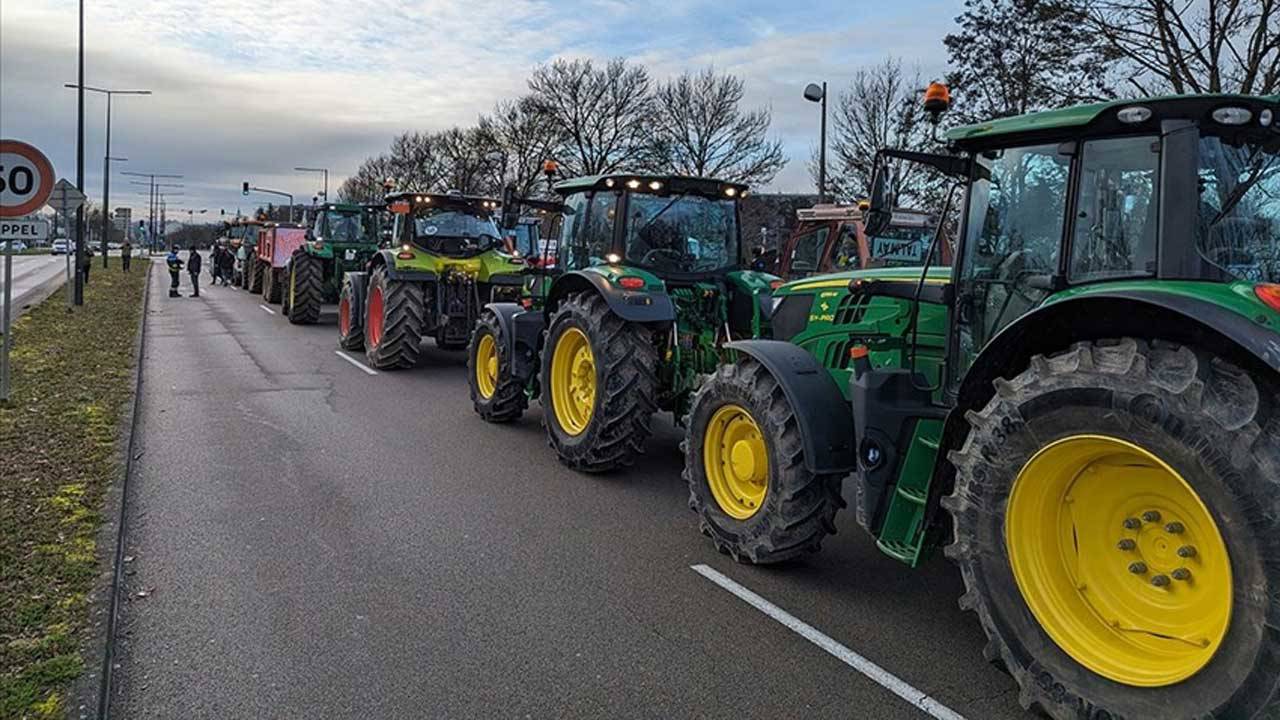 Traktörlerine atlayan çiftçiler, Dordogne yollarını trafiğe kapaatarak devlet binalarının önüne gübre döktü.