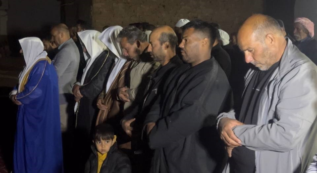 YÜZLERCE KİŞİ SABAHA KADAR DUA EDİP ZİKİR ÇEKTİDışarıda yatmak zorunda kalan ai le için yüzlerce kişi seferber oldu. Bölgenin tanınmış insanlarından biri olan Seyit Cuma El Tufehi'nin çağrısı üzerine evin önünde toplanan kalabalık, saatlerce dua edip namaz kıldı. Dua ve namazların ardından evdeki eşyaların bir daha tutuşmadığı belirtildi.