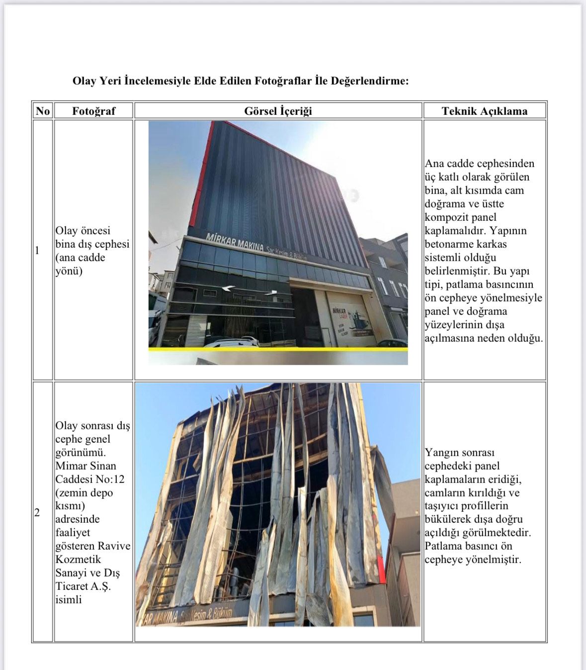 “Olayın öngörülebilir nitelikte olduğu, gerekli güvenlik önlemleri alınmış olsaydı bu ölçekte patlama ve can kaybının yaşanmayacağı teknik olarak değerlendirilmektedir. Üretim sürecinde kullanılan ekipmanların nitelikleri ile işyerinin mevzuata uygunluğu bakımından çok yönlü bir ihmal zinciri tespit edilmiştir.”