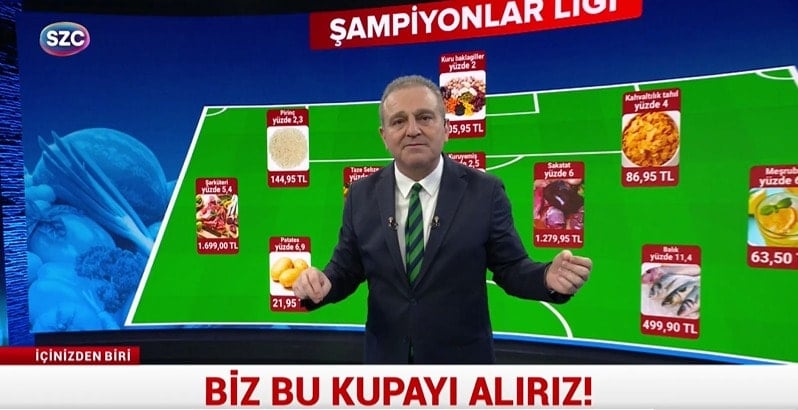 SÖZCÜ TV programcısı Ekrem Açıkel, İçinizden Biri programında Aralık ayı enflasyonunda şampiyonlar ligine kalacak takımı anlattı.