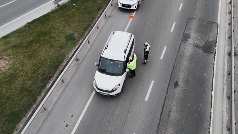 Dron ile havadan yapılan takip sonucu kural ihlali yaptığı tespit edilen araçlar, ileride oluşturulan kontrol noktasında ekiplerce durduruldu. Kurallara aykırı şekilde şerit düzenini bozarak ilerlediği belirlenen sürücülerin her birine, Karayolları Trafik Kanunu ‘ofset taralı alan ihlali cezası’ kapsamında 1.246 TL idari para cezası uygulandı.