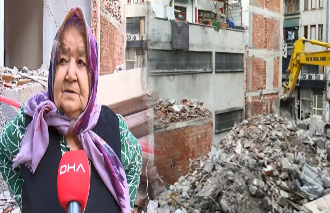 Duvarsız kalan evinde tek başına otururken görüntülenen Behiye İçkili, "2 gün önce yaşandı bu olay. Oğlum yanımda duramıyor, çünkü az kalsın bugün oğlumu dövüyorlardı. Müteahhit bir sürü kişi toplayıp gelmiş. Ben de sinirden oturdum çalışmaları izledim. Hiçbir şey söylemiyorlar, biraz sesimizi çıkardık mı hemen suçlu oluyoruz.
