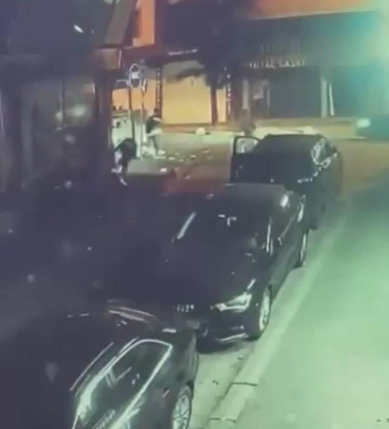 Polis ekipleriyle şüpheliler arasındaki kovalamaca çevredeki bir iş yerinin güvenlik kamerasıyla görüntülendi.