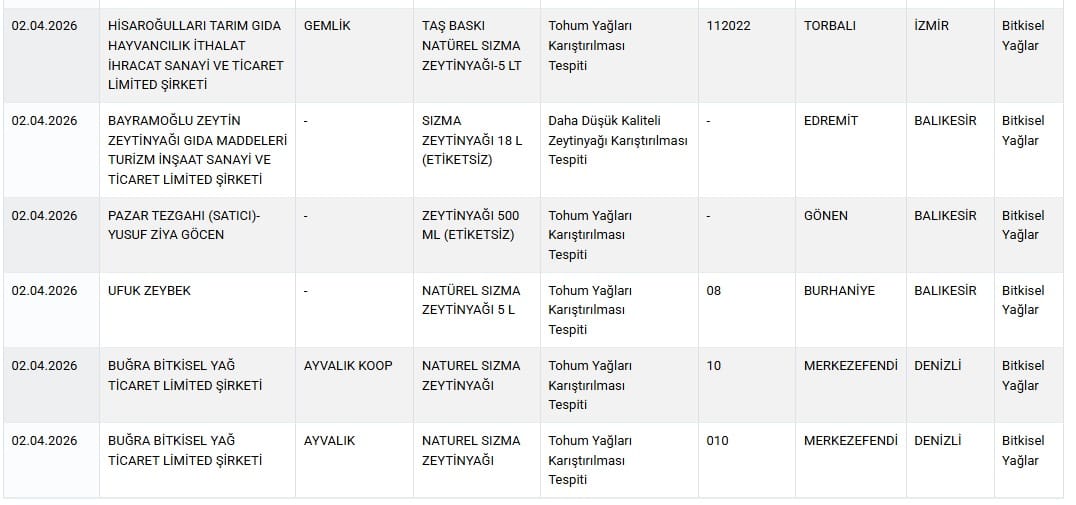 İŞTE İFŞA EDİLEN O FİRMALAR VE ÜRÜNLERDenetim raporlarına göre İzmir, Balıkesir ve Denizli merkezli firmaların ürünlerinde uygunsuzluk saptandı.
