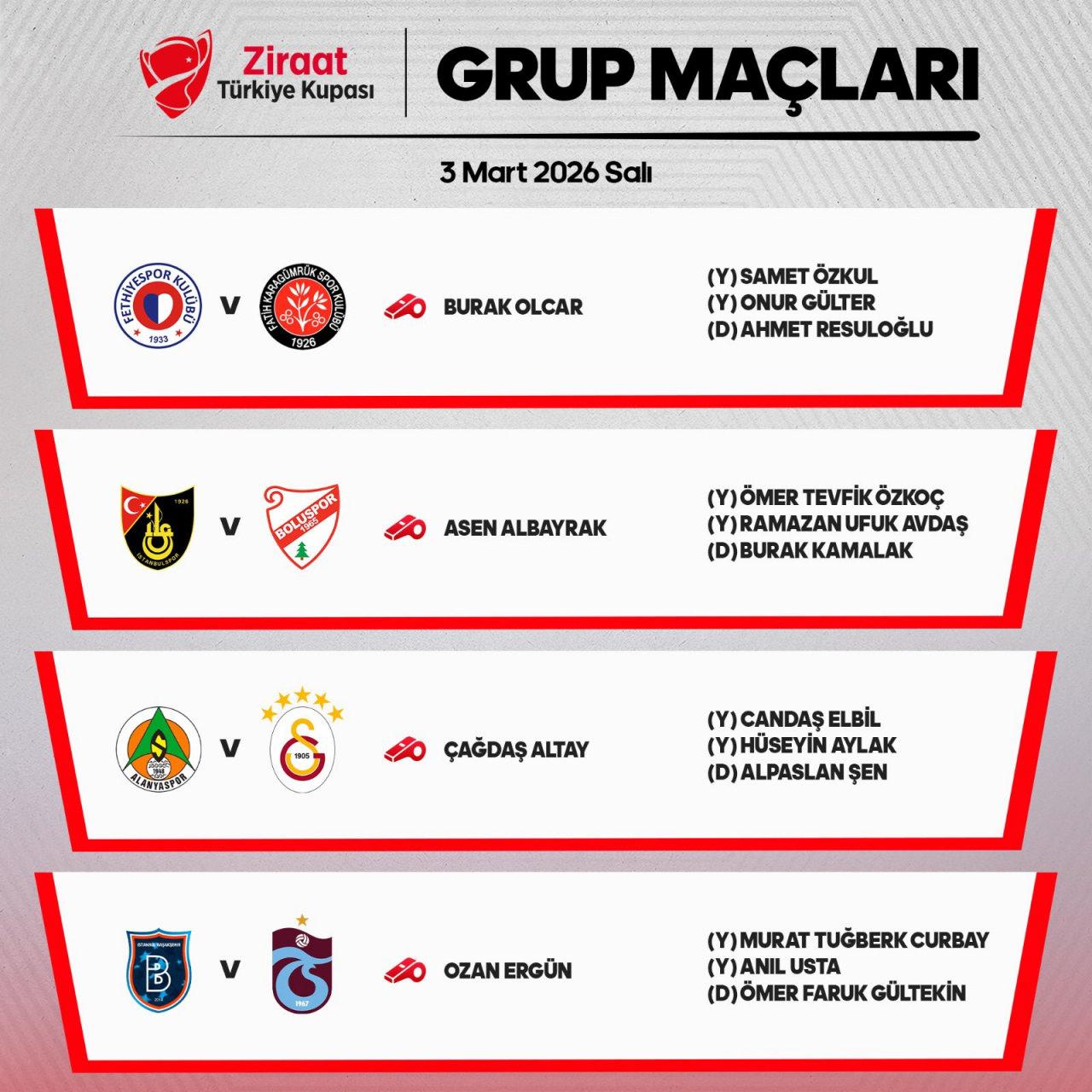 Ziraat Türkiye Kupası'nın grup aşamasında oynanacak karşılaşmalarında düdük çalacak hakemler ve yardımcıları belirlendi.