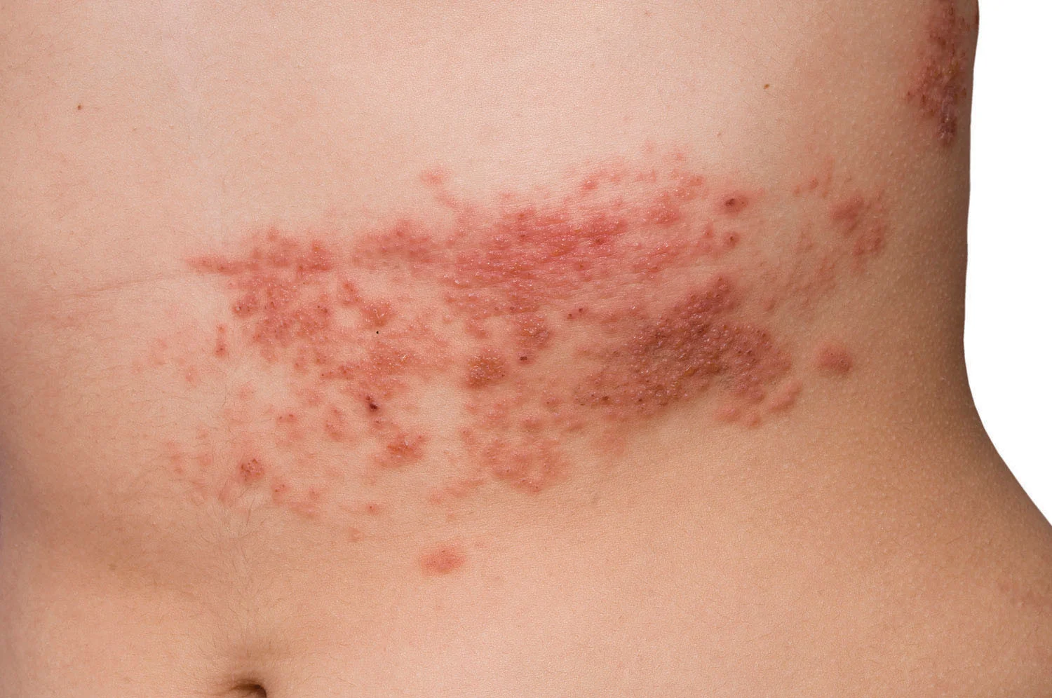 Ardından o bölgede kızarıklık gelişebilir ve üzerinde içi sıvı dolu kabarcıklar görülebilir. Bu kabarcıklar zamanla kabuklanır ve iyileşir.