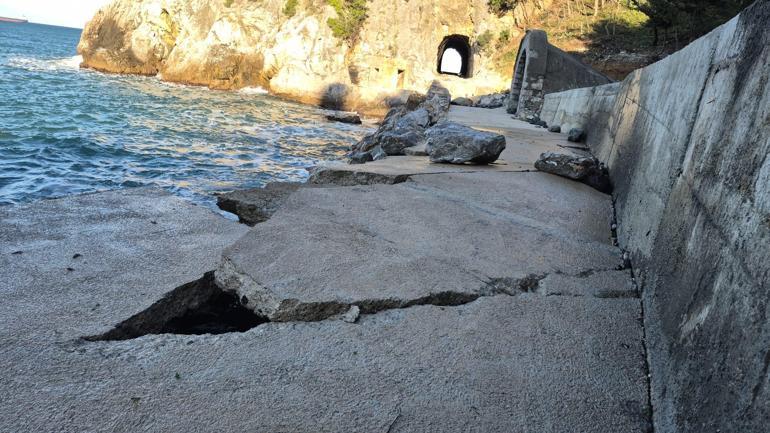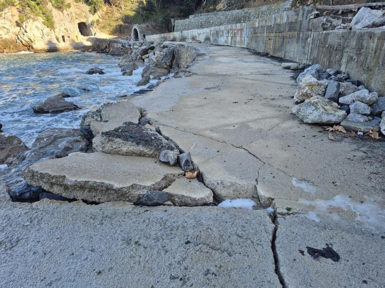 Zonguldak’ta dalgalar, sahildeki yürüyüş yolunu çatlattı